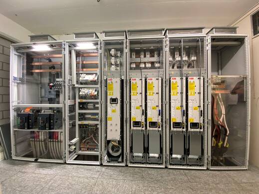 Den bestehenden ABB ACS600 in den verbauten Schränken haben wir komplett demontiert. Nach Kundenwunsch und auf Mass einen neun Schrank in unserem Steuerungsbau geplant, gebaut und verdrahtet. Das wichtigste Element: das ABB Frequenzumrichter Modulpaket ISU ACS880–204–1130A–3 und INU ACS880–104–1250A–3. Vor Ort wurden die Schränk an Ihren Platz gebracht und installiert. Nun ist die erfolgreiche IBN auch erledigt. Vielen Dank für den tollen Auftrag.